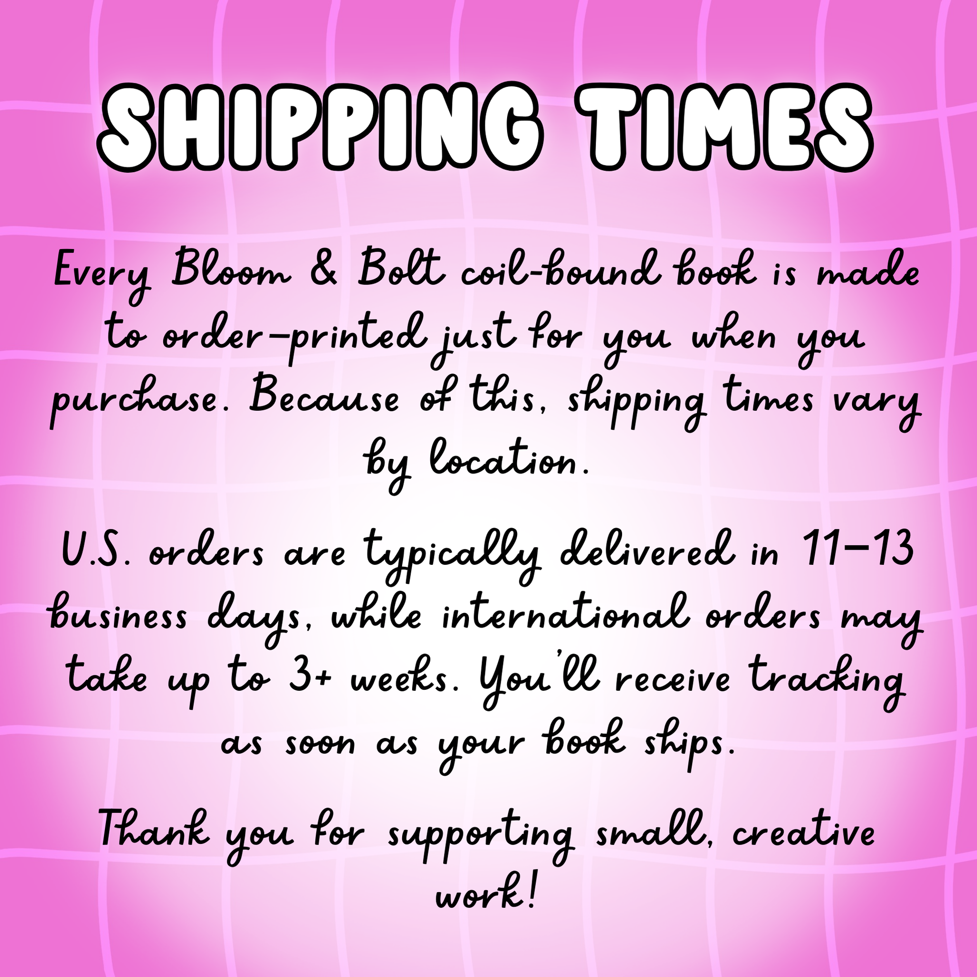 Good things take a moment: your book is made to order and packed with care. Most U.S. orders arrive in 11â13 business days; international friends, please allow up to 3+ weeks. We appreciate your patience while we make something lovely just for you.